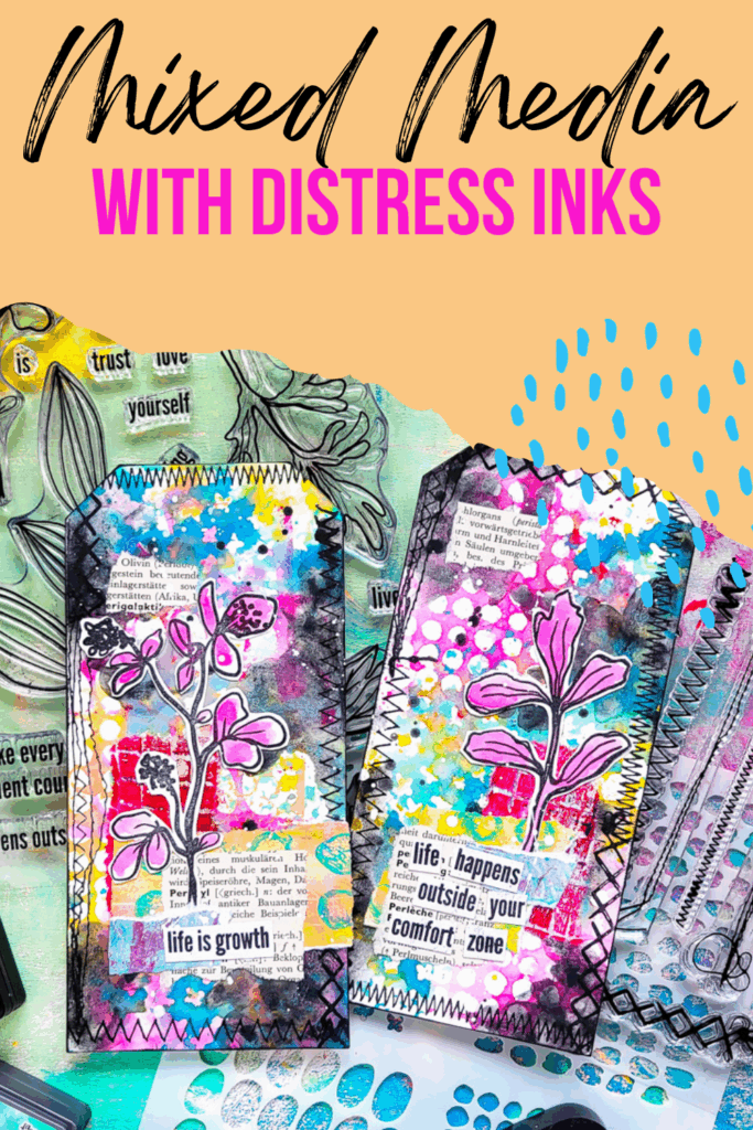 Mixed Media Tags with Distress Ink Background and Collage Leaves