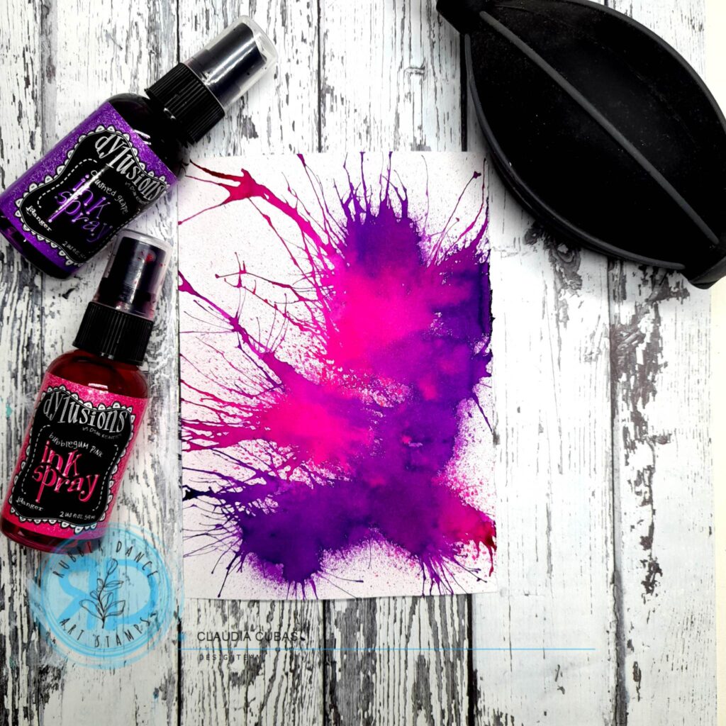To create the background I used two shades of spray colors, purple and fuchsia, and the blower, to create this particular effect.