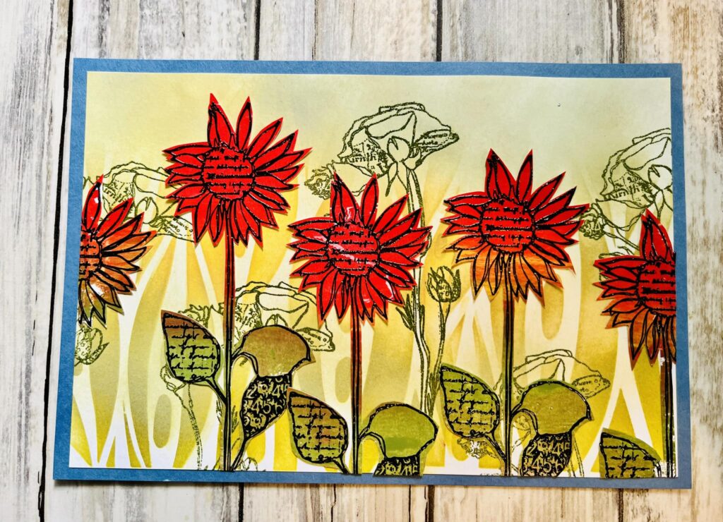 Claudia used Pencil Marks 6, Mixed Sentiments 1, Crazy Flowers 2 and Criss Cross Stencil