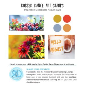 If you are creating anything with Rubber Dance stamps this month, whatever your inspiration, please share in our FB fan group, or on instagram using #rubberdancemoodboard and tag us @rubberdance in your post, cos someone is going to win €10 to spend in the Rubber Dance store!   Don’t forget…. You gotta be in it to win it! You don’t have to use the moodboard, any new project is eligible for the prize.