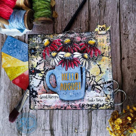 Dunja used Doodle Flowers, Mixed Media Borders, Mixed Sentiments 1 and Vintage Stuff 1 stamps with Ink Dots, Big Circles and Leaves 1 stencils
