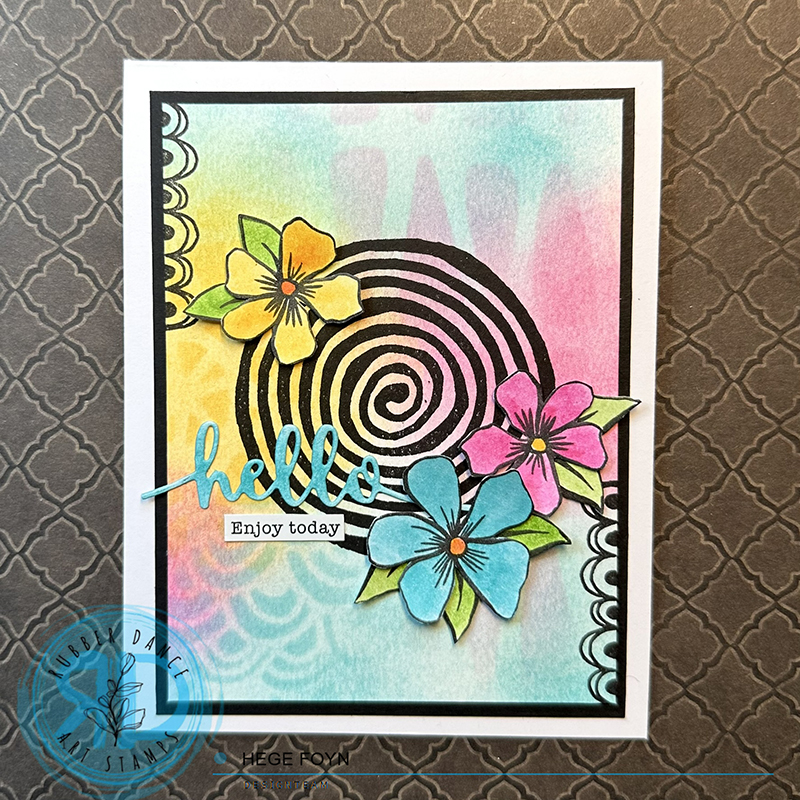 Hi everyone, it’s Hege here with a new card inspiration. I want to show you a colourful card I’ve made using a pre-made background using the Big Triangles and Rainbows 2 stencil and the Mix It Up 4 stamp set.