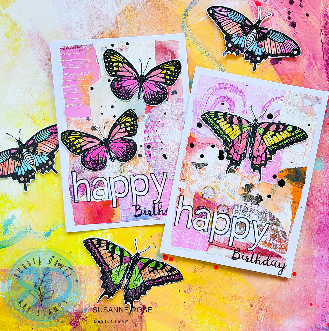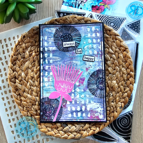 Hi everyone, it’s Hege here with a new card inspiration. I want to show you a colourful card I’ve made using a pre-made background using the Big Triangles and Rainbows 2 stencil and the Mix It Up 4 stamp set.