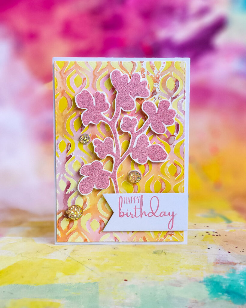 Birthday Card with Stencil Background & Distress Inks