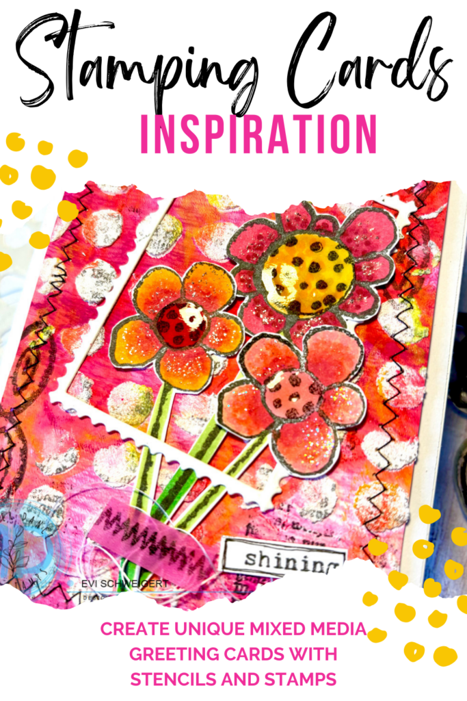 Hey there, it’s Evi on the blog today with a mixed media greeting card made with a gelli background, the Dotted stencil with a paste and the Pencil Marks 4 stamping set.