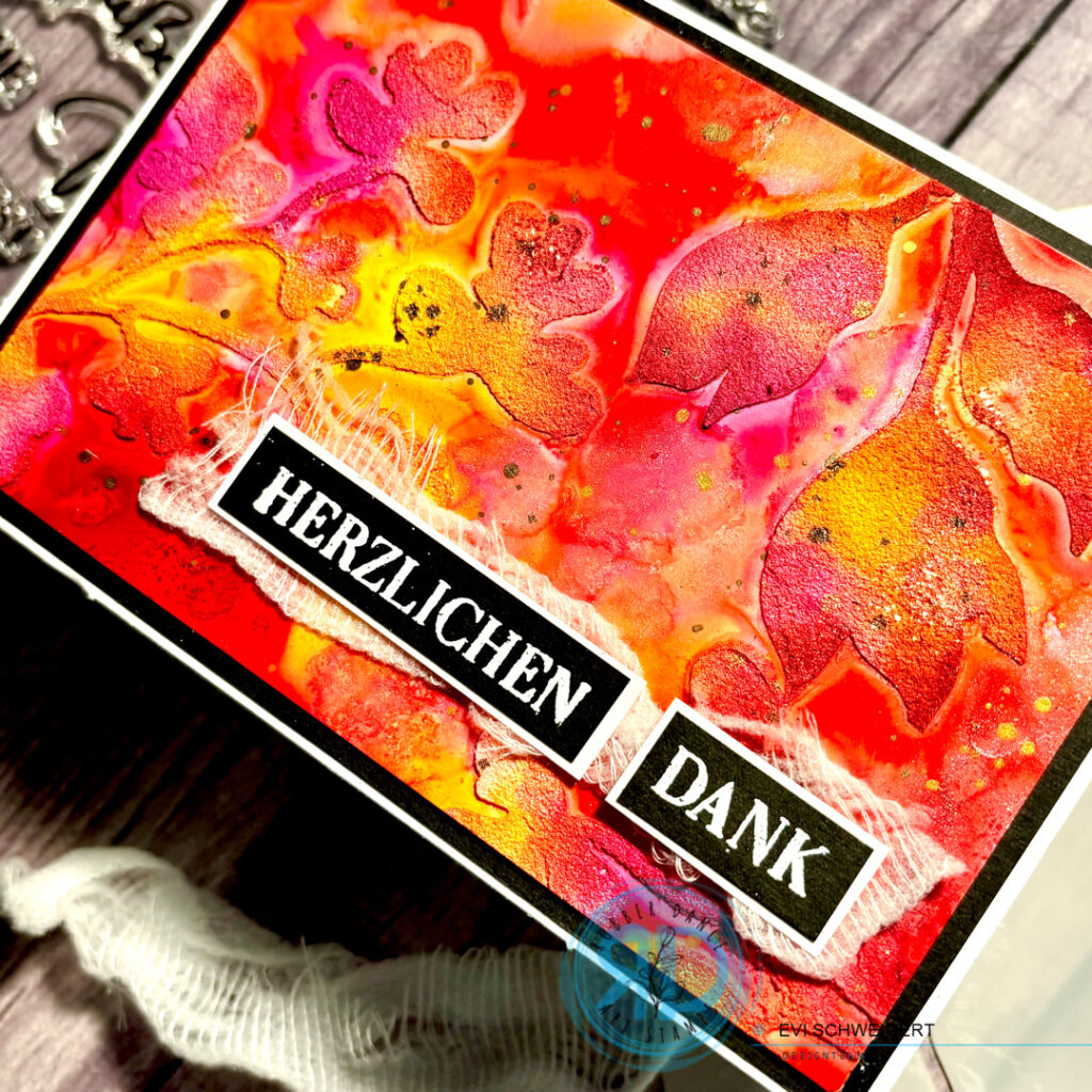 I love colors, and especially in autumn, the trees and bushes glow in the most beautiful colors. Maybe I got just a tiny bit carried away when I worked with the alcohol ink, but it’s just so much fun!
