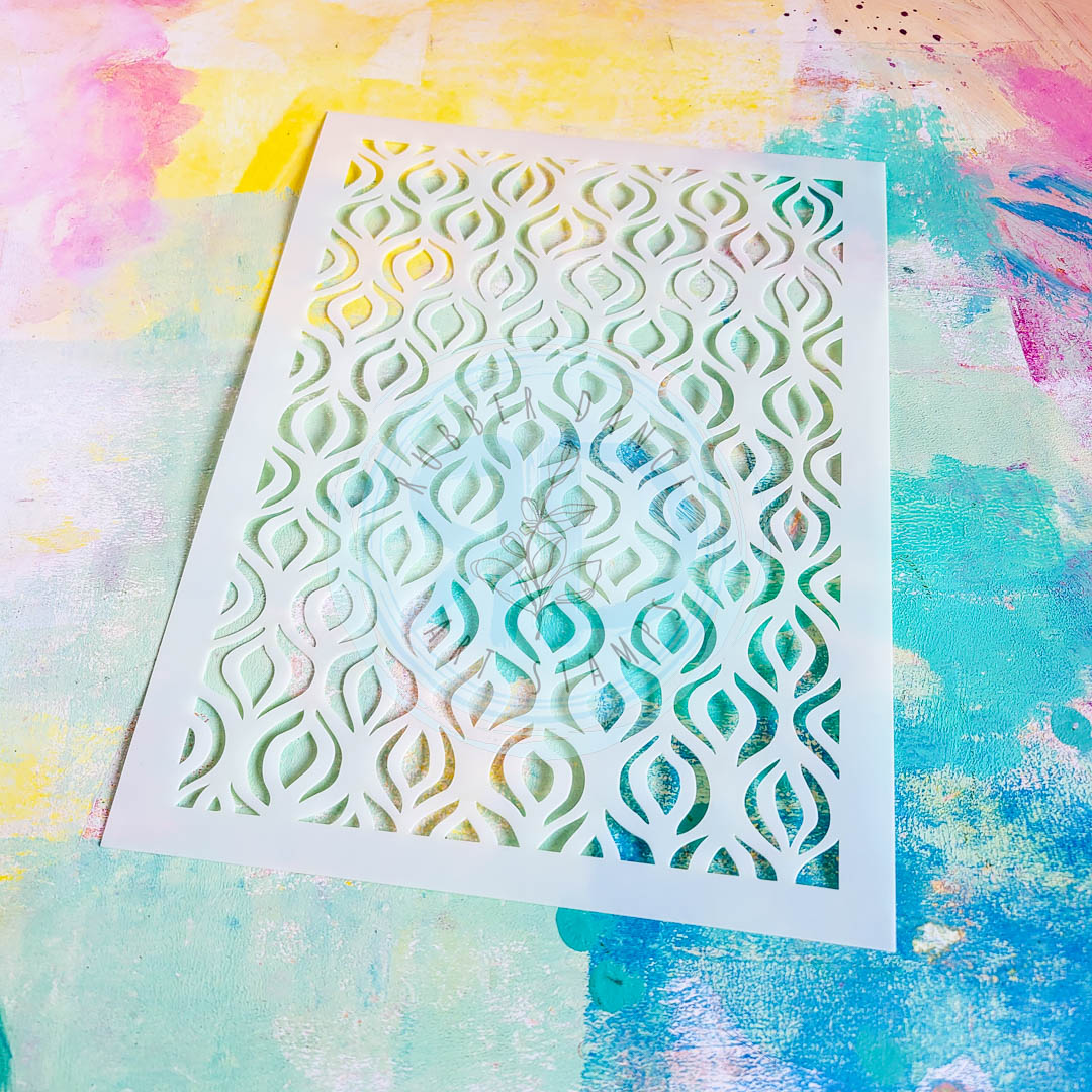 I have created a gel printed background using blue and teal acrylic paint. I created texture using the Ornament stencil. You can see a full process reel of this on my Instagram account @meerkatmakesbyl