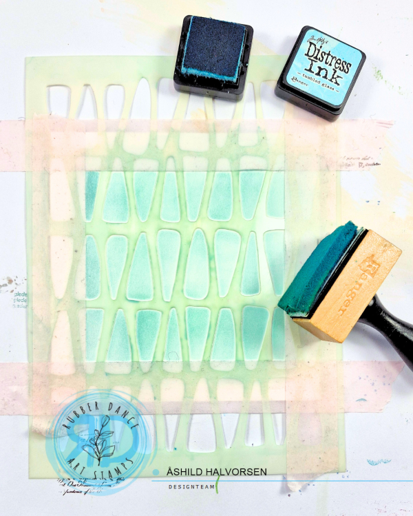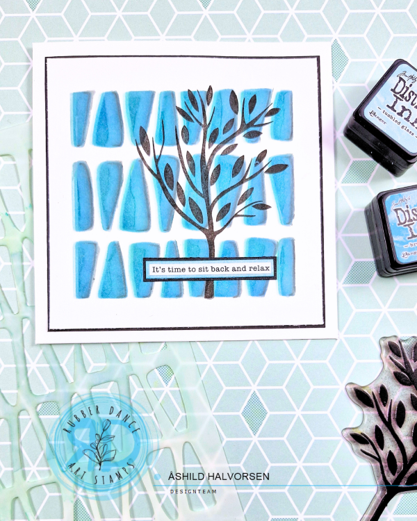 Hello, Åshild here! For this post I’ve had so much fun. I grabbed one of the fabulous Rubber Dance stencils – the Big Triangles – and decided to have a play with it. I wanted to make the stenciled triangles look dimentional. Yes, that was my entire plan for this card *haha*. But, you know what? I made it! And I’ll share with you how I did it. Are you ready?