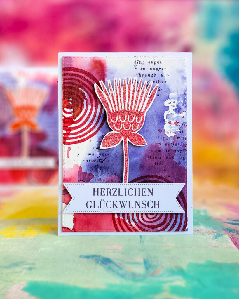 Hi there, Susanne here sharing a Birthday card with an inky background and stamps from our Mix It Up 4 , Carved Collection 6 and Kartengrüße stamp sets.