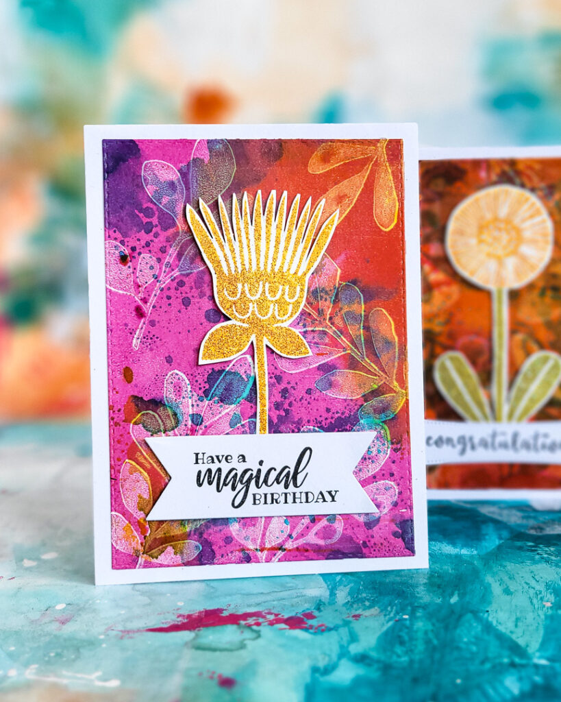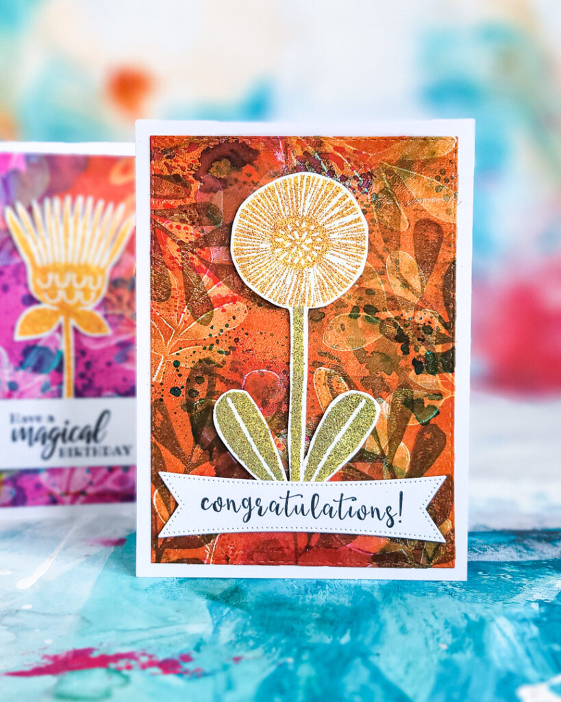 Bright Greeting Cards using Gelli Prints and Carved Collection 6