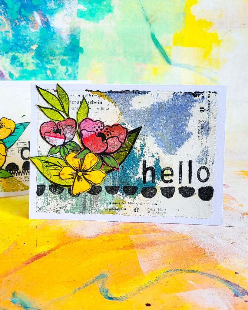 Greeting Cards with a Grungy Gelli Background & Loose Florals
