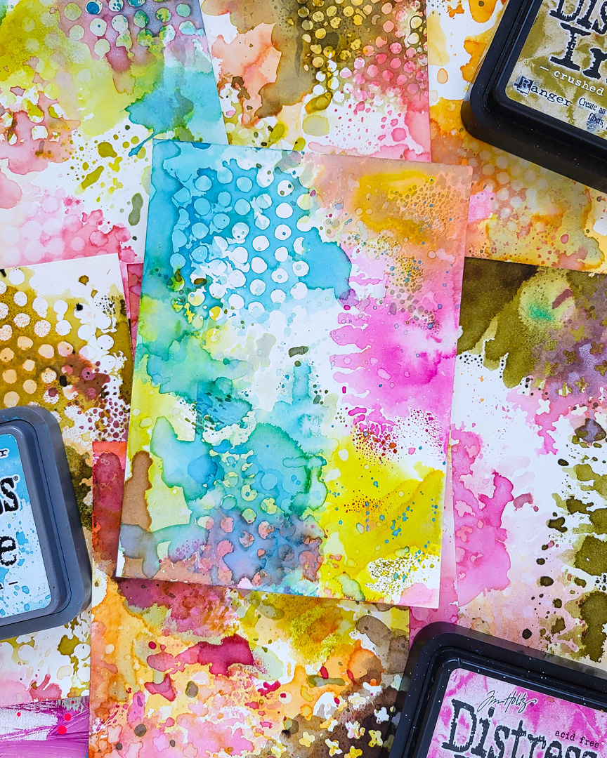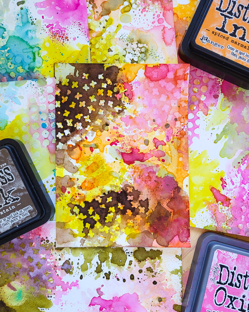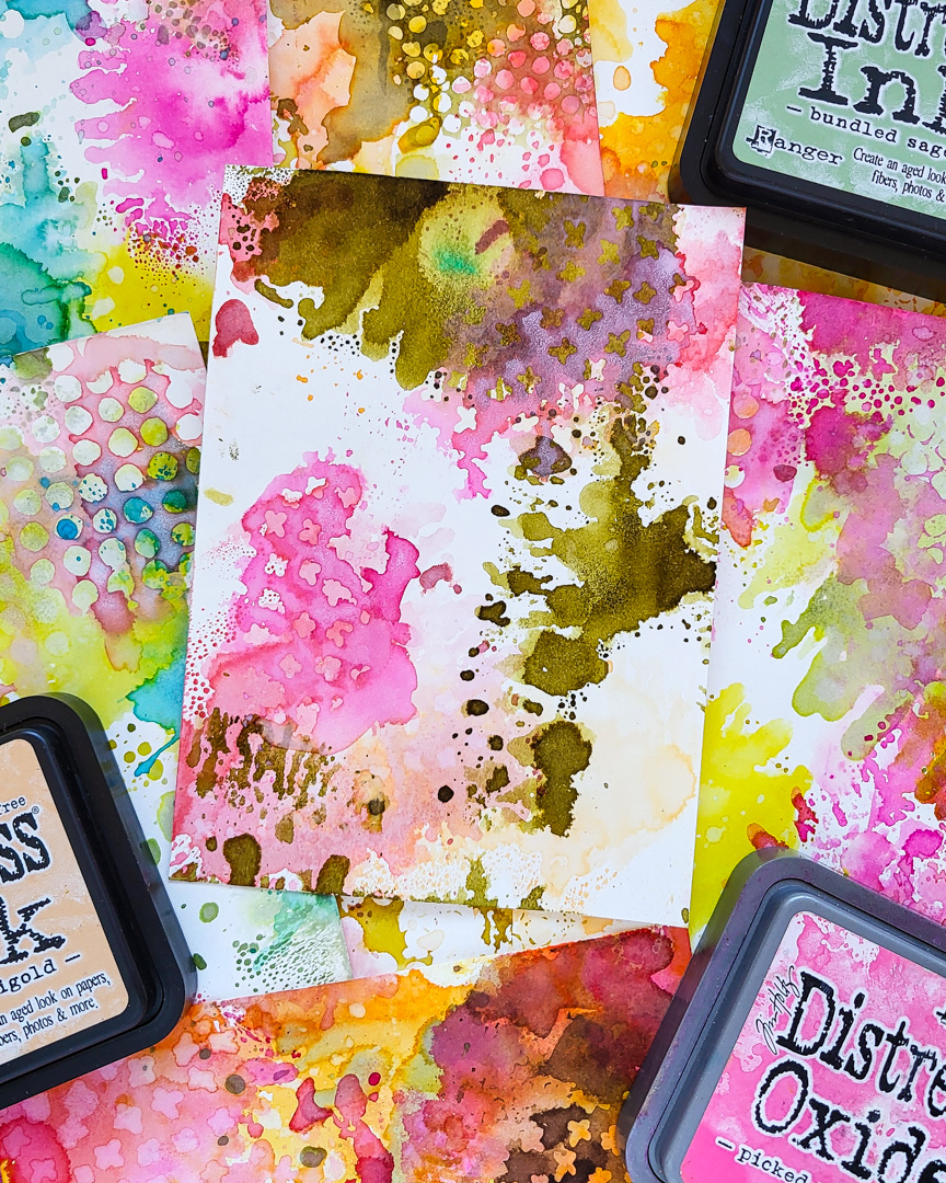 Hi there, Susanne here with a new tutorial on Distress Ink & Oxide backgrounds! I love making my own papers for greeting cards or other paper projects and today I am sharing some Spring-themed backgrounds with our Mini Textures and Mini Ink Dots stencils.