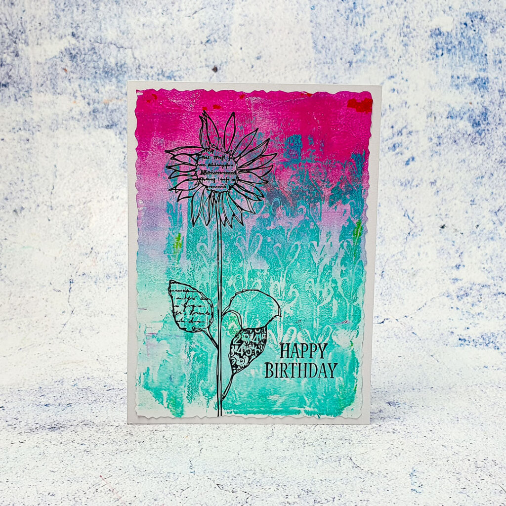 On this card I just left the flower image blank, as there was so much going on with the textures. I really like the simplicity of these cards.
