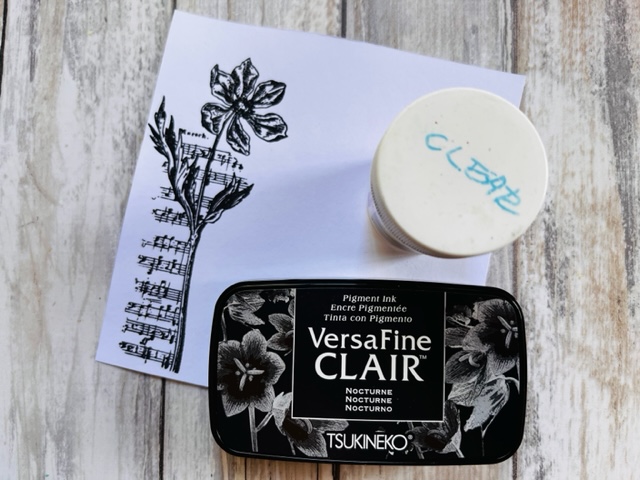 Although I used Versafine ink, this is a new ink pad and still very juicy, so I embossed it with clear powder to speed up the drying process.