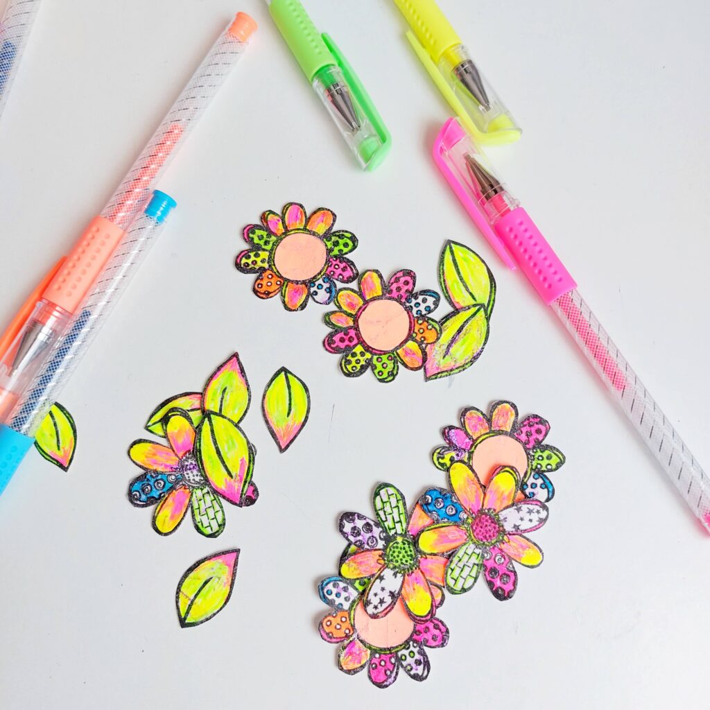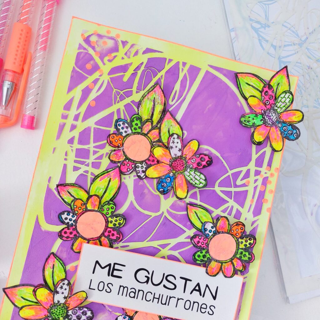 To finish this easy but fun card we stamped our stamps, in this case I used these pretty flowers, which I finished decorating with gel markers (lately I’m a big fan of these pencils).