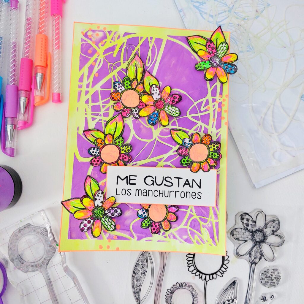 Today I show you this fun card that I made experimenting with textures and colors, I hope you like it.