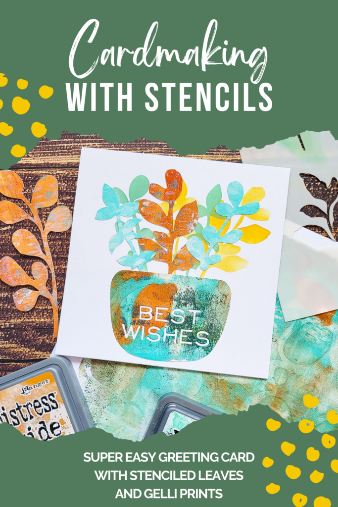 Hi there, Susanne here! Today I’m sharing kind of a graphical greeting card made with our Sketchy Leaves stencils and some of my gelli prints. It’s a super easy card and you can create various designs depending on your choice of color and shape.