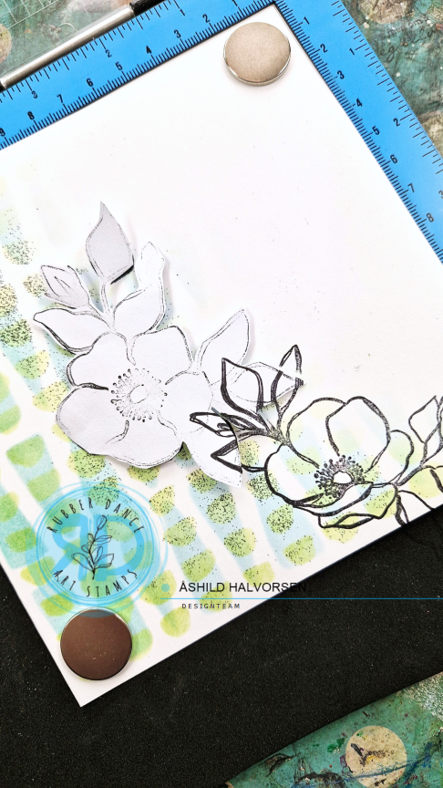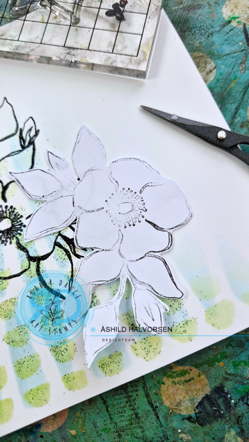 3. Stamp the same flower on a piece of print paper and cut it out as a mask