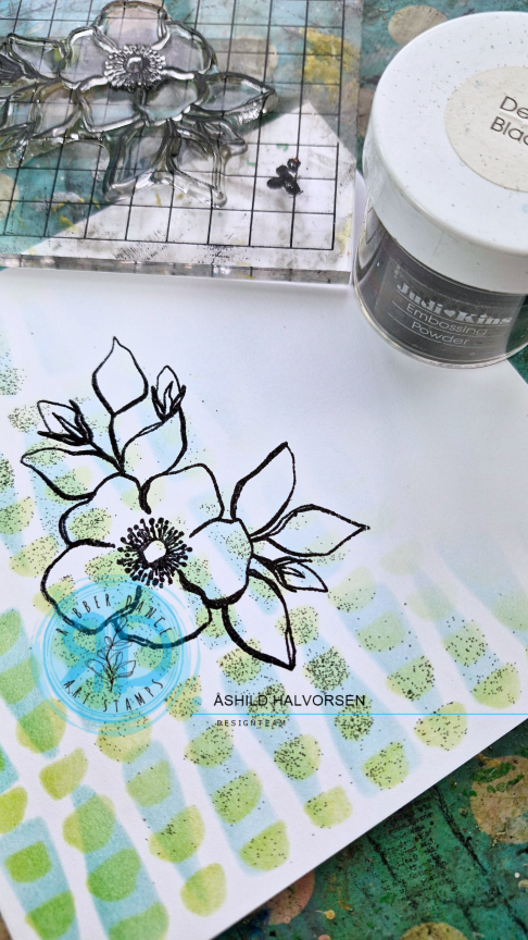 2. Stamp one flower with embossing ink and add heat embossing powder