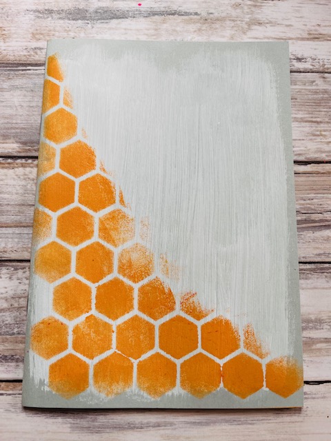 I added some stencilling using a honeycomb stencil and ochre acrylic paint.