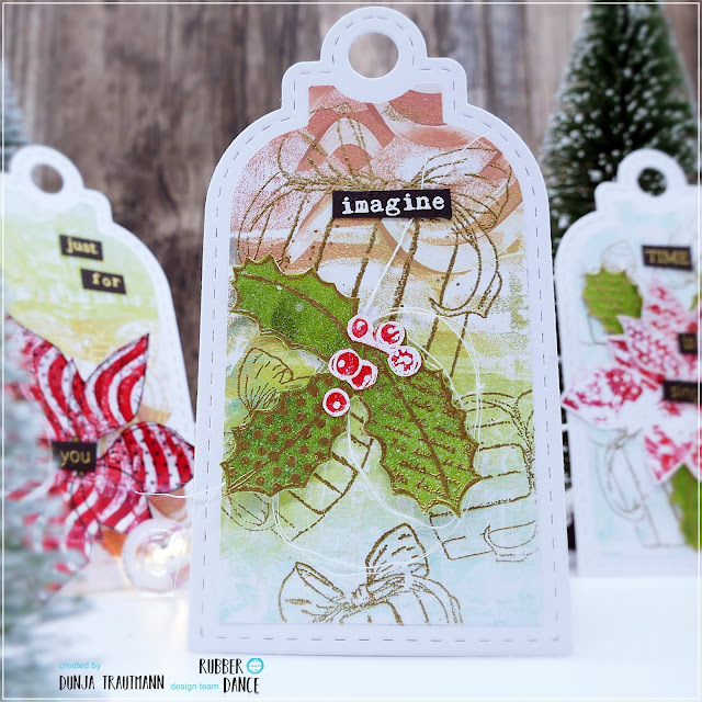 Hi everyone! Have you already started your Christmas production? Today I have three Christmas gift tags to inspire you using the Textured Christmas Green stamp set. These are made quick and easy, sometimes you need them at the last minute, right? I used gel prints to make them unique!