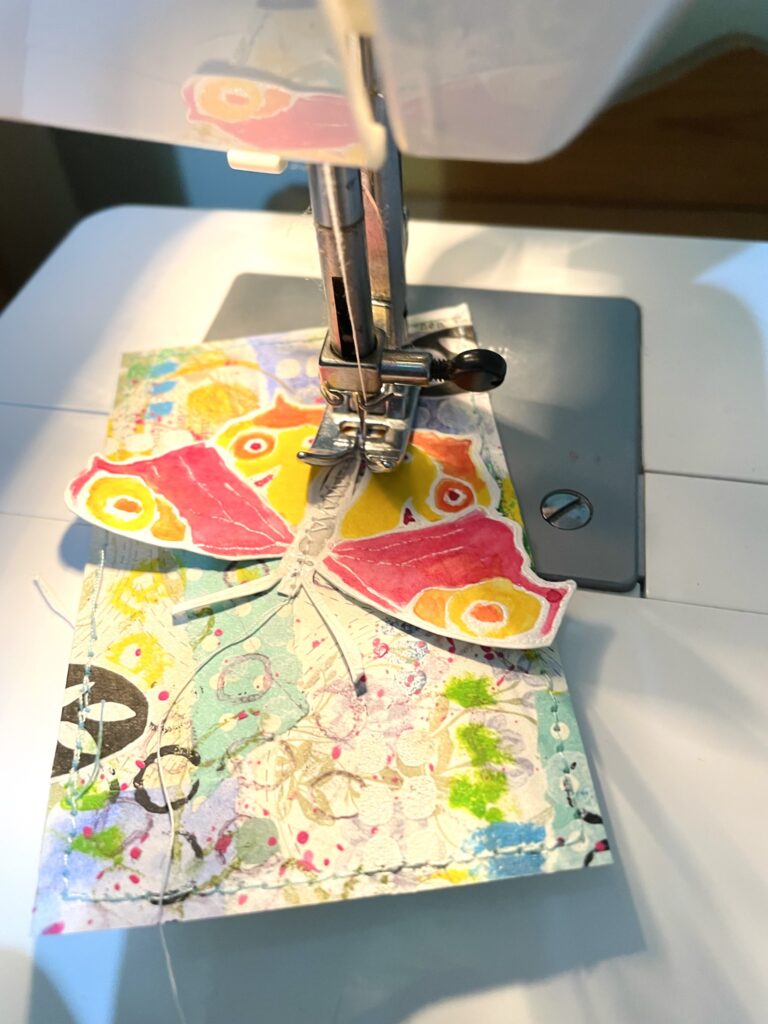 I stitched the butterfly down and then added some iridescent pearls in a complementary colour.