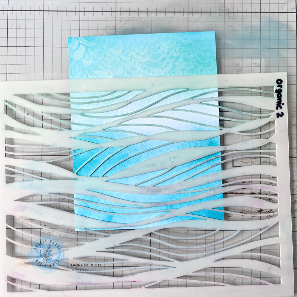 I used Organic 2 for the waves in the sea. Use the same ink tones so that the stenciling is subtle.