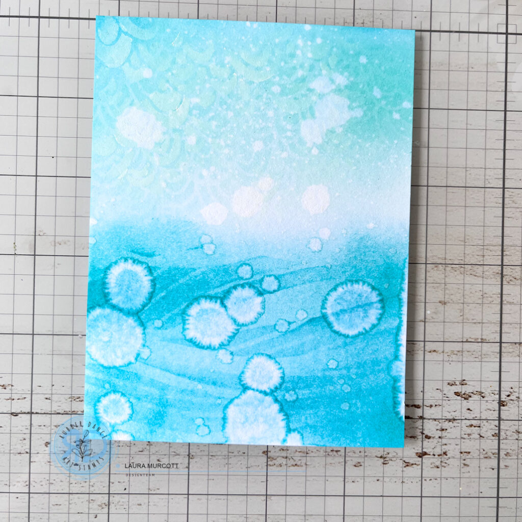 Add some water splashes to get the inks to react. This adds more interest and texture.