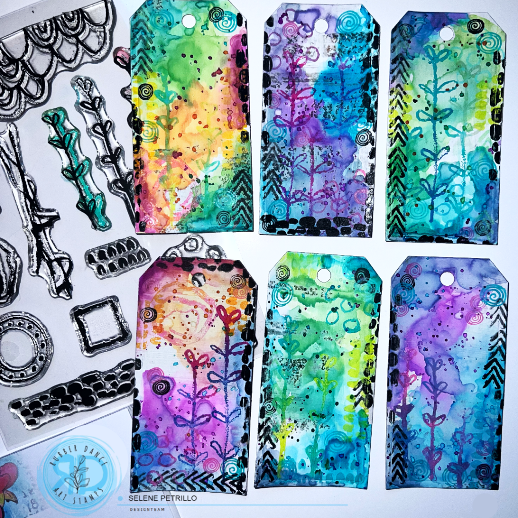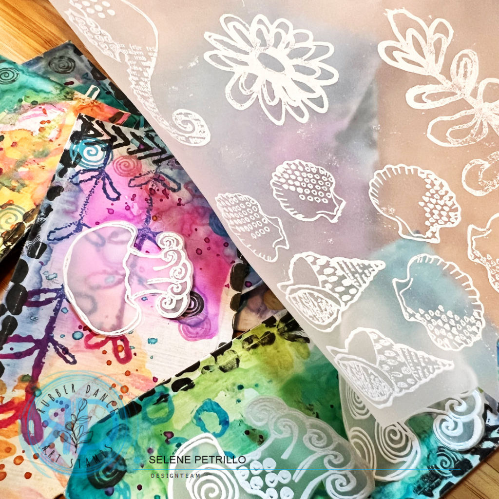 Hi you all! Selene today on the blog with a tutorial to craft super colourful bookmarks with the Textures Sea Creatures and Pencil Marks 7 stamps sets on some gorgeous inky backgrounds. To add even more interest on the background I am using images from Pencil Marks 1.