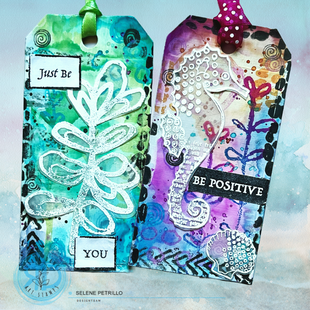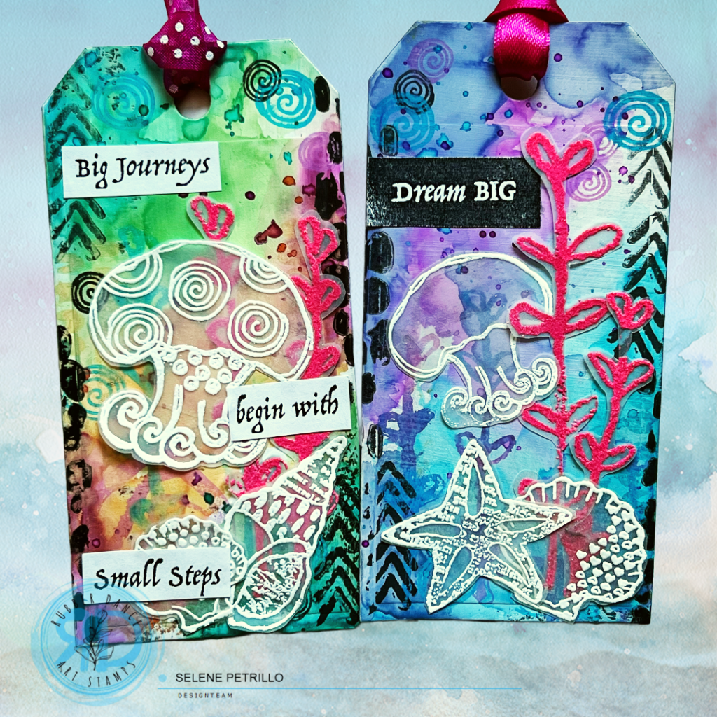 Mixed Media Tag Tutorial with Textured Sea Creatures