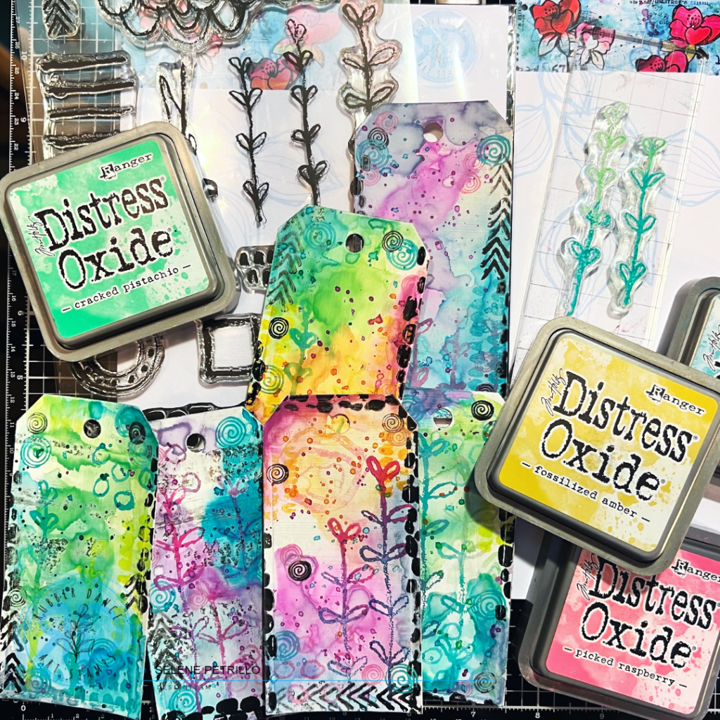 I used Pencil Marks 1 stamps set with Distress Oxides or Nocturne Versafine Clair ink.