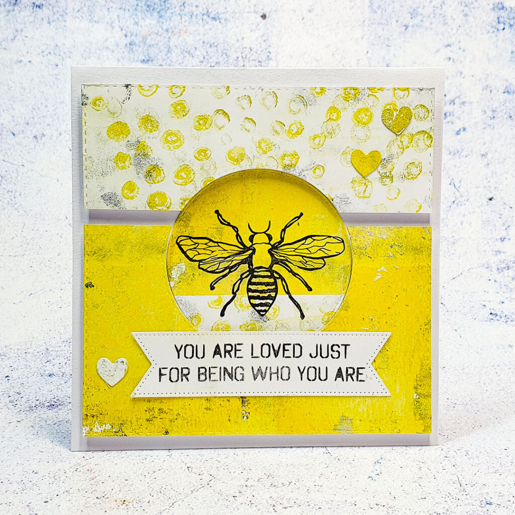 Hi there, Susanne here again. I have some fun cards to share today! For these I used some of my gelli prints. I think gelli printed paper is gorgeous for papercrafting as it is unique compared to the preprinted paper pads you can buy in craft stores. Every print turns out different and it’s another great way to use your stamps.