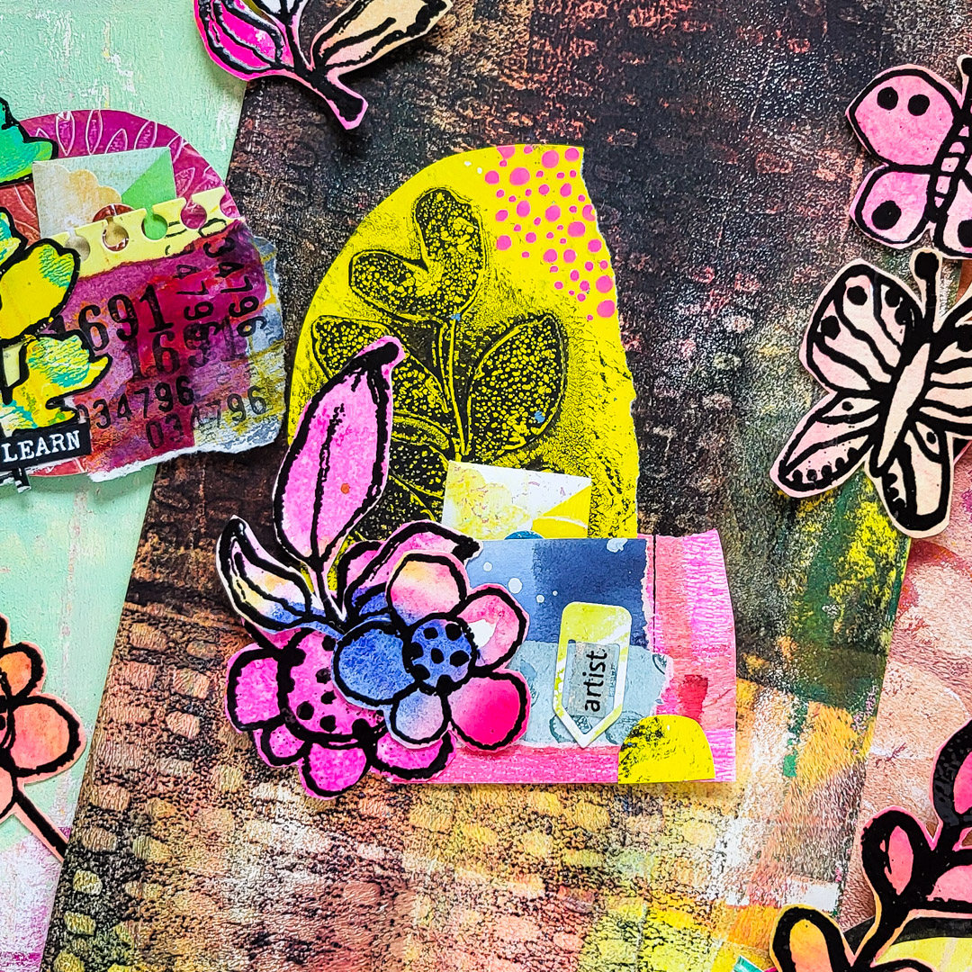 Have a look at some samples on how we used the stamps on different mixed media projects:
