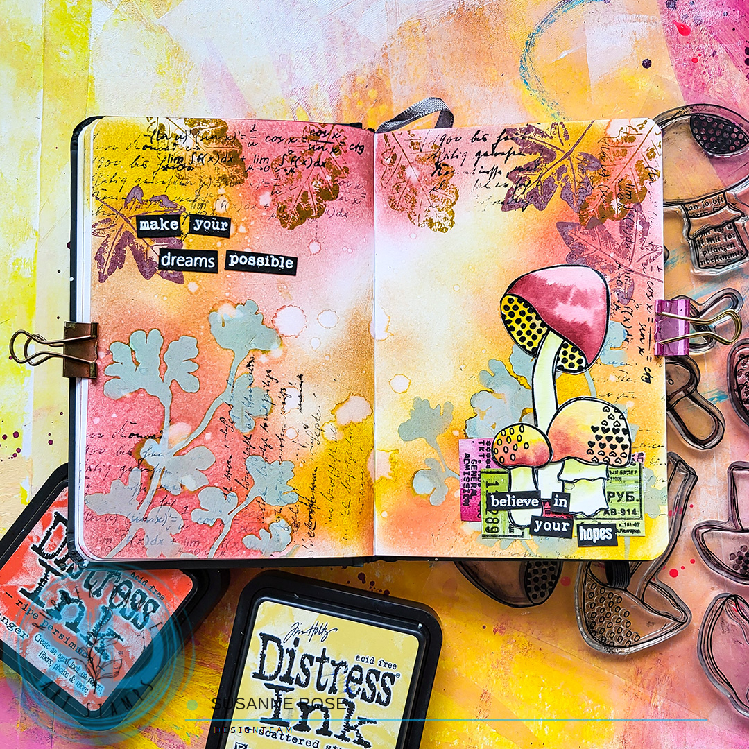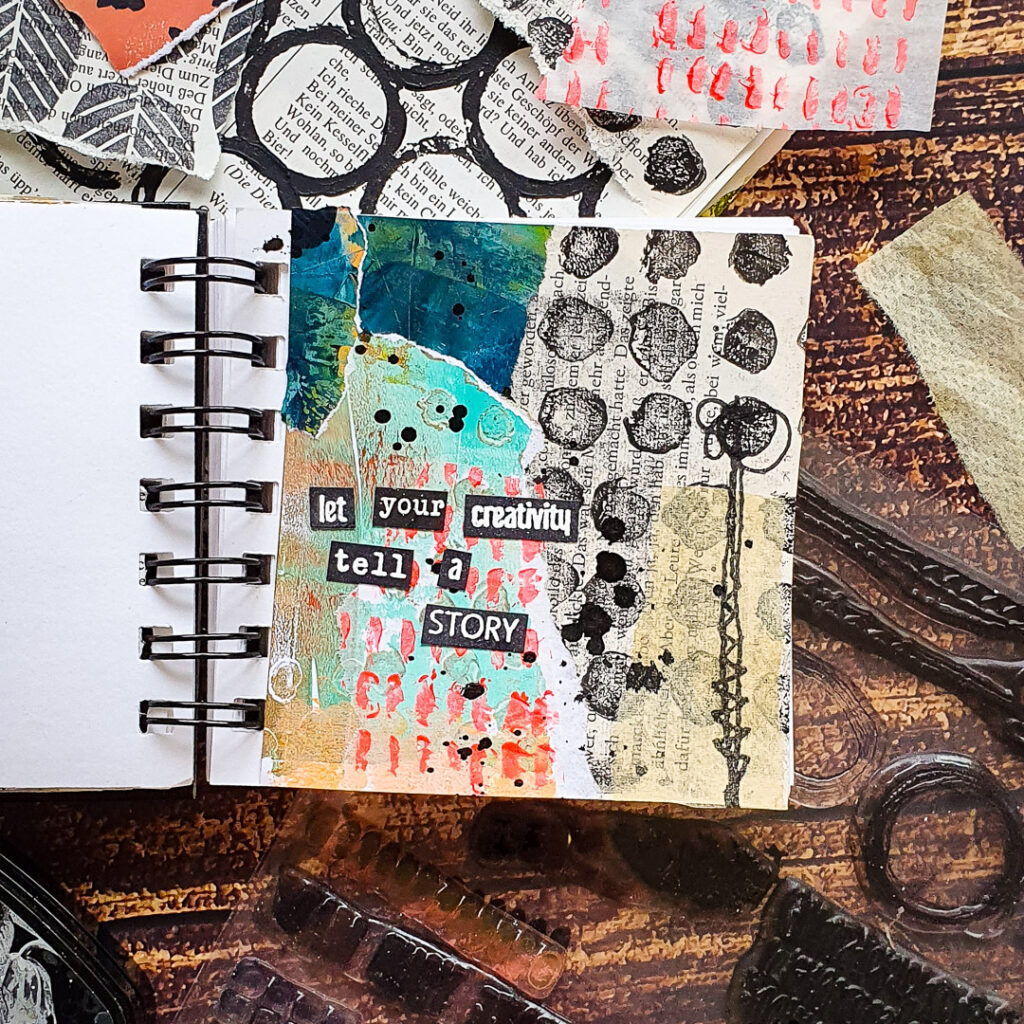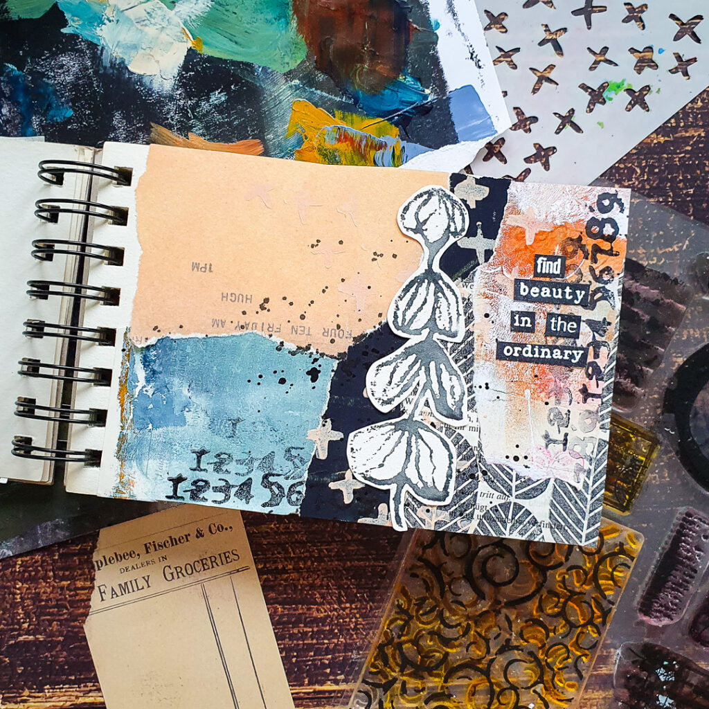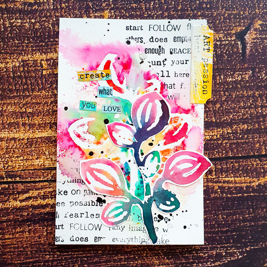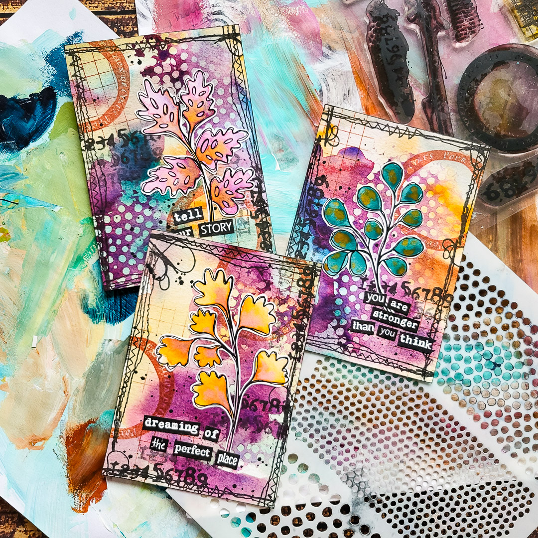 Have a look at some samples with the beautiful stamps from this set! We combined them here with images from our Collage Leaves 2 on a set of mixed media index cards.