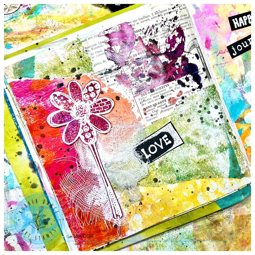 Isabelle made this amazing collage in her art journal with one of the flowers: