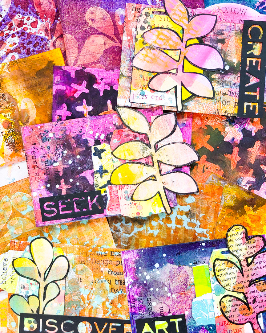 Hi there, Susanne here with a mixed media icad inspiration using some grungy gelli prints together with collage fodder made with our Sketchy Leaves 6 stencil.