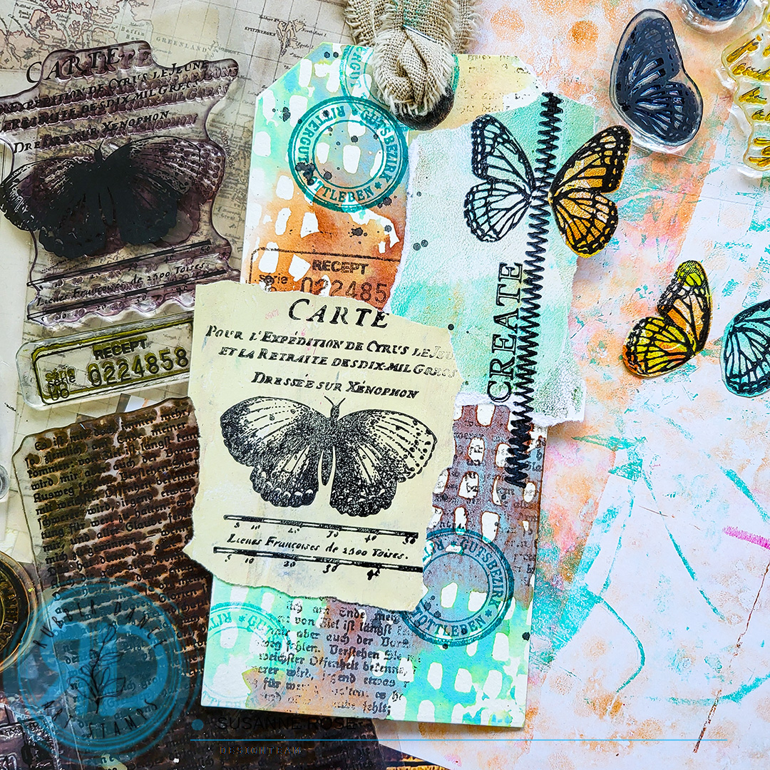 Textured Sea Creatures ATCs with Distress Inks background – Tutorial