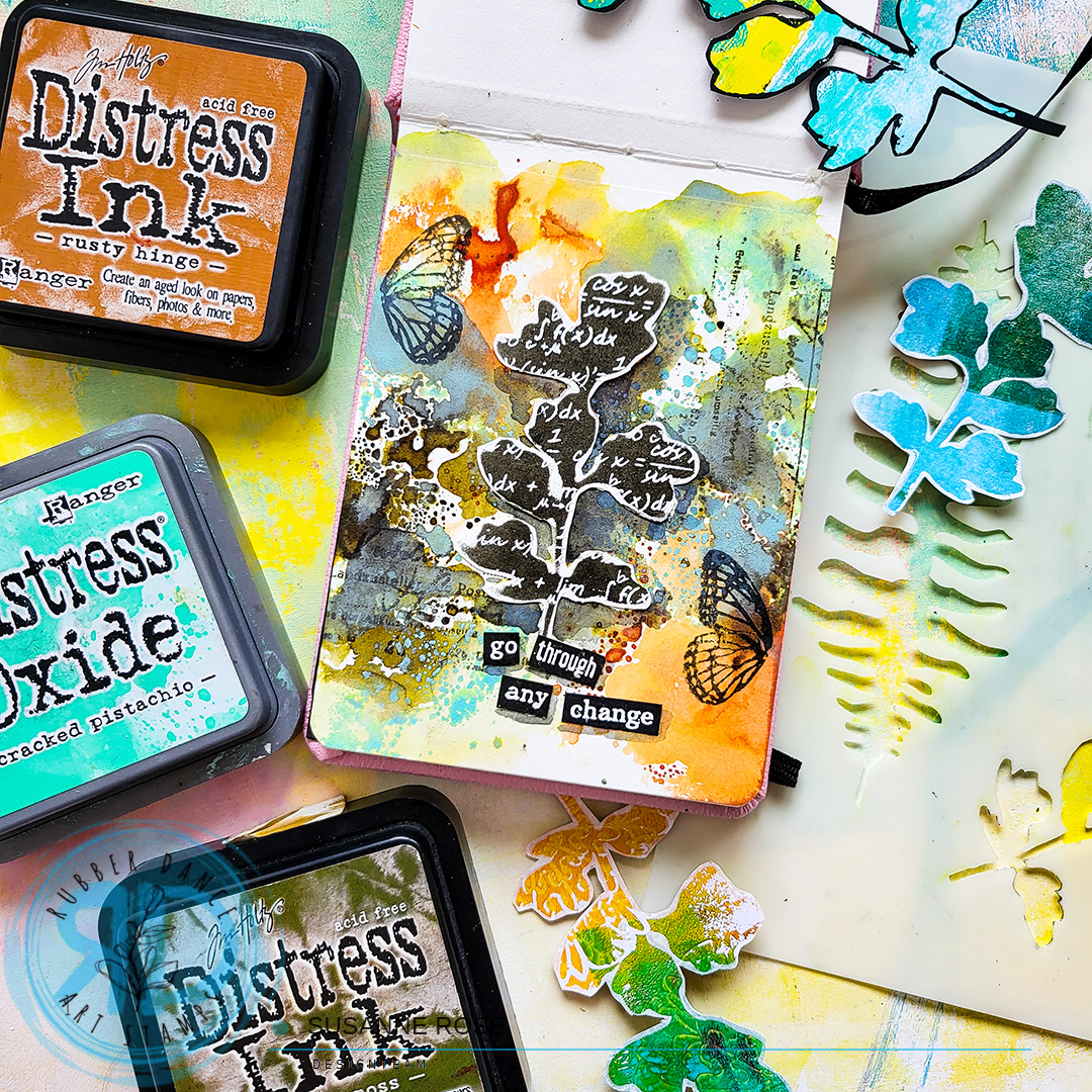 Hello, it´s Sanna here again with a set of motivational/inspirational cards for the new year, created using positive and negative stencil images. For the cards I used the Sketchy Leaves and Textured Mushrooms 2 stamp set with the Wheels and the Leaves 2 stencil.