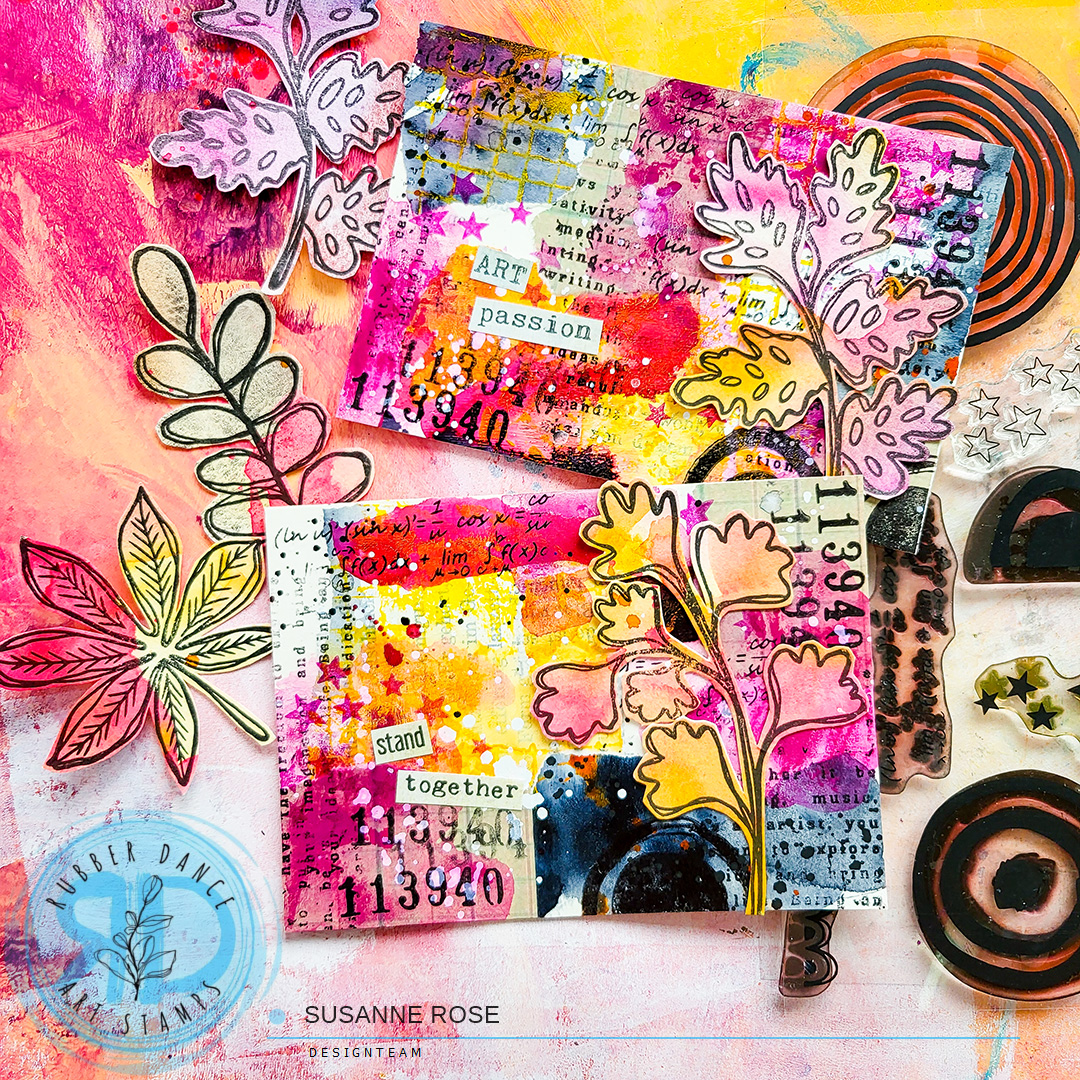 Hi there, Susanne here with an art journal page tutorial using Distress Inks & Oxides together with our Sketchy Leaves 4 stencil, our Mix It Up 4 stamp set and the lovely Funny Fungi. Click continue to watch the video.
