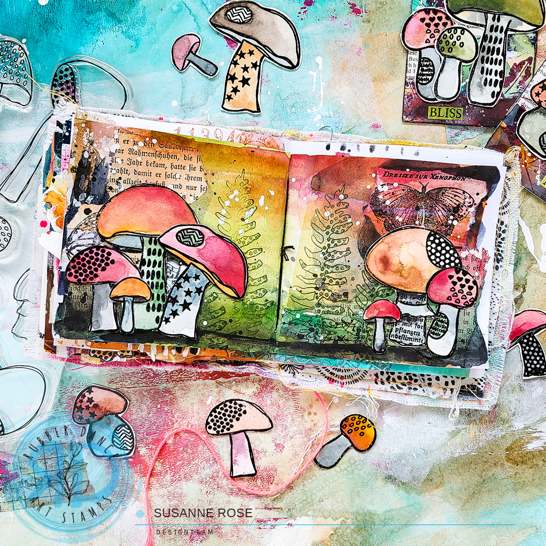 Hello, it´s Sanna here again with a fall themed card tutorial. I absolutely adore the new Textured Mushrooms 2 stamp set and wanted to create a fun mixed media card with some of the images and some stenciling.